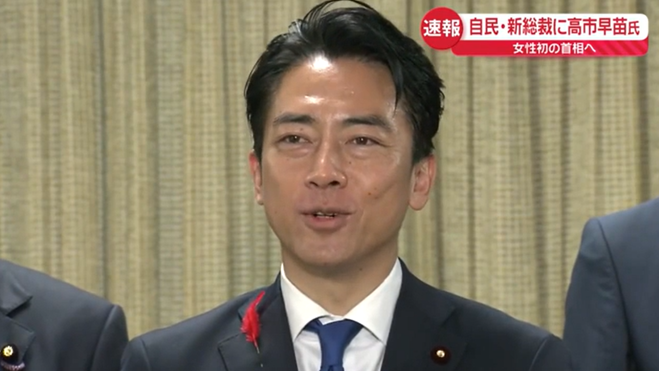 10月4日下午的自民黨總裁選舉中,日本農林水產大臣小泉進次郎不敵前經濟安全保障擔當相高市早苗。