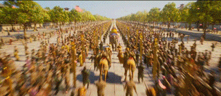 在電影中,大到洛陽城的宏偉壯麗、大兵團作戰的恢弘和行軍佈陣的細節,小到袁紹衣服講究的絲綢質感,對於今天中國動畫所能做到的技術,都不在話下,甚至成本和實現難度都遠低於拍攝一部同樣效果的真人歷史大片。更何況,動畫片裏不會有演員演技的參差、外型是否貼合的爭議、CG特效和真實佈景的違和感、以及各種由於“人”而產生的成本和不確定因素。在歷史題材影視劇創作遭遇瓶頸的今天,也許動畫可以接過為我們“造夢”的大旗了。