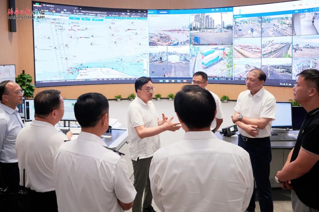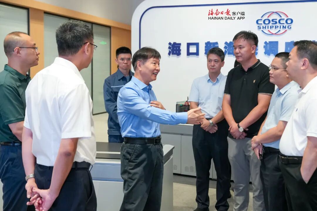 在新海港調度指揮中心,馮飛聽取有關部門和單位關於瓊州海峽航線復航、新能源汽車過海保障、高峯期運力保障等情況彙報。他指出,國慶中秋假期已進入後半段,瓊州海峽過海輪渡將迎來返程客流、車流高峯。要緊盯過海需求,做足充分準備,在確保安全的前提下,加快恢復、科學調配運力,提升新能源汽車等裝船和通行效率,全力保障車客平安、高效、順暢過海。要提升服務能力,優化工作流程,整合各方力量,為進出島旅客提供更加暖心周到的特色服務,努力營造安心、舒心出行環境。要立足長遠提升保障能力,完善各方協同聯動,優化進出島客滾運輸航線佈局,提升船舶安全性能和綠色環保水平,建設與瓊州海峽發展需求相匹配運力模式,提升港區基礎設施防災減災能力,打造綠色、智慧、經濟、高效的航運體系。