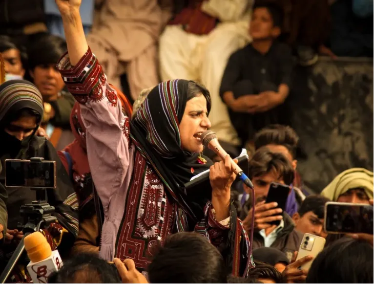 瑪赫朗·俾路支博士(Mahrang Baloch)是一名被關押的年輕醫生,同時也是倡導和平的人權活動家(譯註:俾路支團結委員會的領導人,由於組織大規模抗議被巴基斯坦警方逮捕)——她曾入選《時代》週刊“青年領袖”,還是諾貝爾獎提名者。如今,她已成為ISKP宣傳的核心攻擊目標,其形象頻繁出現在該組織的視頻影像、宣傳冊、傳單及社交媒體活動中。