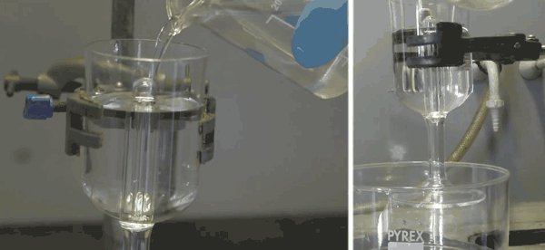 作者(希爾自指)使用內徑9毫米和30毫米的試管測試了該裝置。如書中所説的過程隨即發生,排水迅速;改變a點與b點之間的距離(即換用不同長度的長管——本文作者按)對運行過程沒有明顯影響。當使用內徑約3毫米的長管作為內管時,排水情況一樣發生,不過有趣的是,在細窄的管內,表面的張力會形成一層薄膜,這足以使罩管cc-a內的壓力略低於大氣壓。因此,罩管內會留有一管水柱,頂端幾乎到達點b。