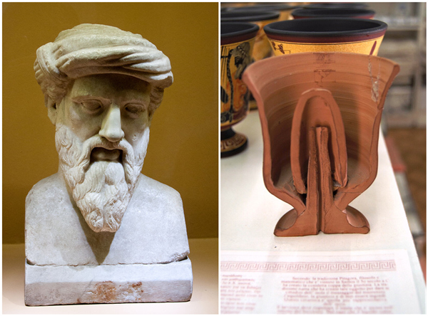 畢達哥拉斯半身像和“畢達哥拉斯杯”的截面
