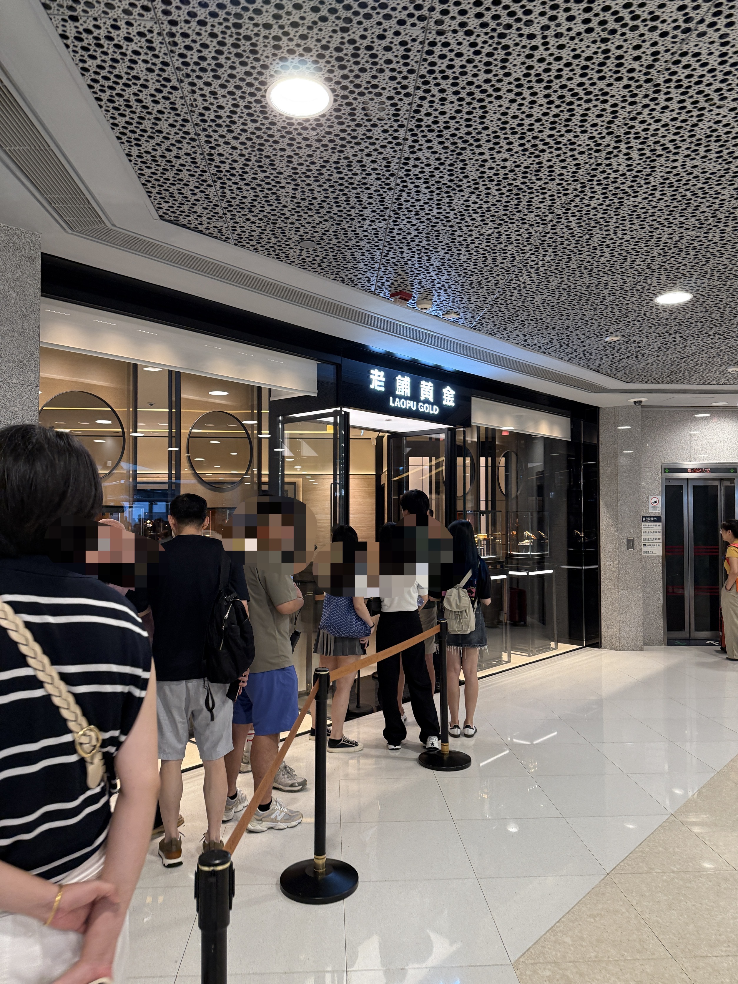 在國慶期間,老鋪黃金香港IFC門店展現出超高人氣,消費者通常需要在門口等待三十分鐘至數小時不等才能進店。在一眾奢侈品門店的包圍中,老鋪黃金是唯一一個需要排隊進店的門店。