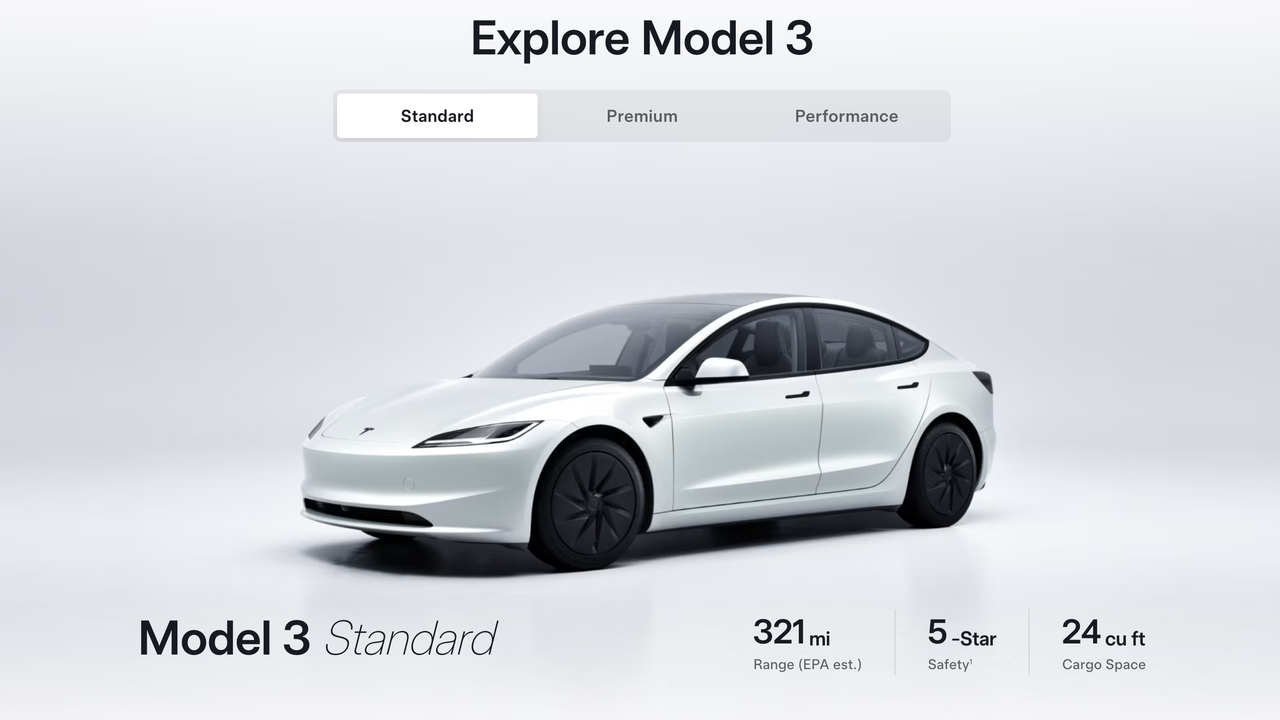 Model 3和Model Y的標準版(Standard)售價 特斯拉