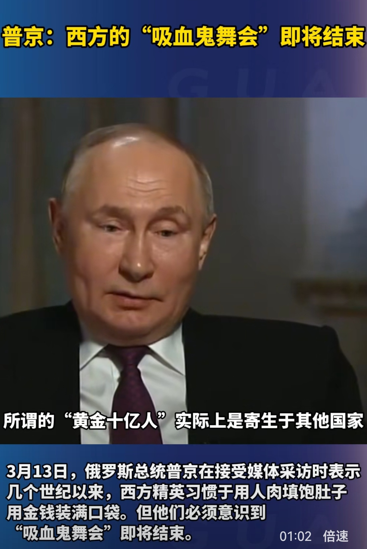 和美西方撕破臉後,普京在國際場合上頻頻提及“黃金十億”這個詞,強調説,所謂“黃金十億”國家(指的是人口約10億的西方國家)企圖維繫對世界的統治地位,對他國干涉主權、盤剝經濟利益並強加外來價值觀,這種政策破壞國際關係穩定,阻礙全人類發展。