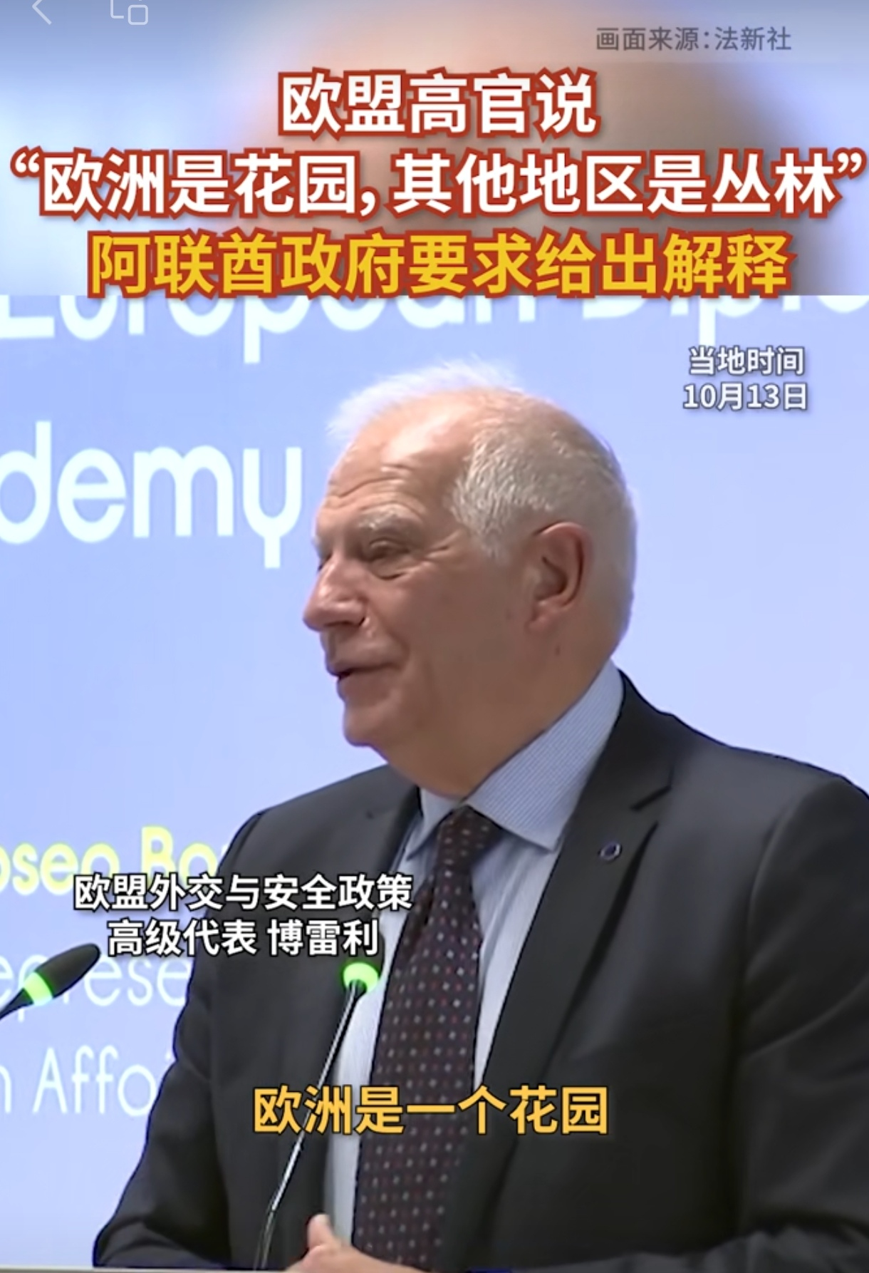 好好好,博雷利這老頭説的都對,歐洲花園的世界是“文明世界”,歐洲花園的價值是“普世價值”,彷彿歷史上的侵略者不是來自歐洲,而是來自亞非拉。