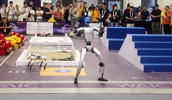 今年夏天在上海舉辦的世界人工智能大會上,展廳內隨處可見人形機器人在拳擊台上對打、四足機器狗用後腿站立、機器人為觀眾提供爆米花。幾周後,北京舉辦了首屆世界人形機器人運動會,機器人在賽事中賽跑、跳舞、踢足球,還完成了障礙賽挑戰。