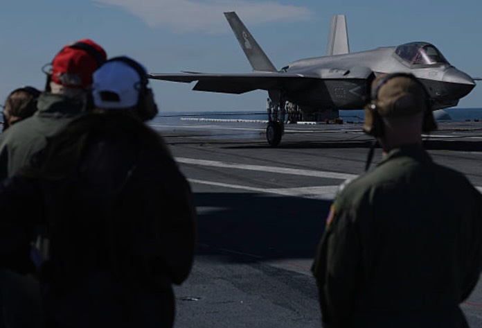 海上活動,特朗普則登上“布什”號航母,近距離觀看了航母上的F/A-18戰機彈射起飛和F-35C戰機的阻攔着艦,編隊中的驅逐艦向大西洋上發射了導彈和炮彈,海豹突擊隊則乘坐艦載直升機表演了模擬登艦……雖然相比一開始美國媒體網傳的海軍閲艦式差了不少,但比起美國陸軍帶給特朗普的“嘉年華閲兵式”,海軍的這場戲顯然更加體面——畢竟在核航母表演五代機使用,全天下依然是美國獨一份。