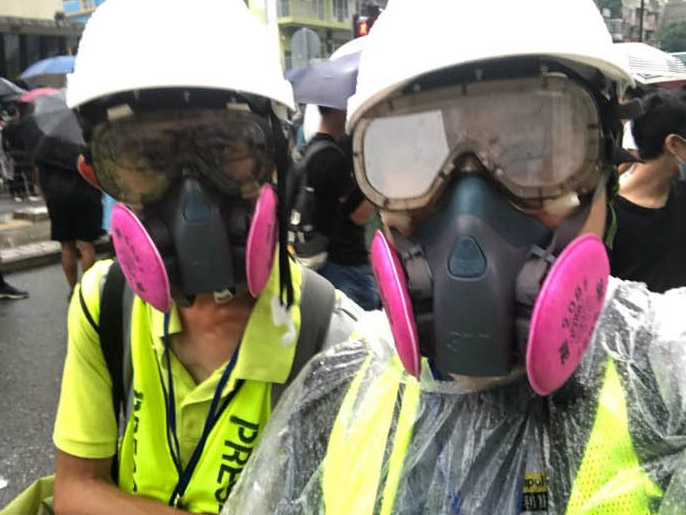 兩人還在教會里販賣所謂“戴着防毒面罩,經歷催淚彈攻擊,不慎稍微嗆到,而且皮膚有刺痛感”的經歷。