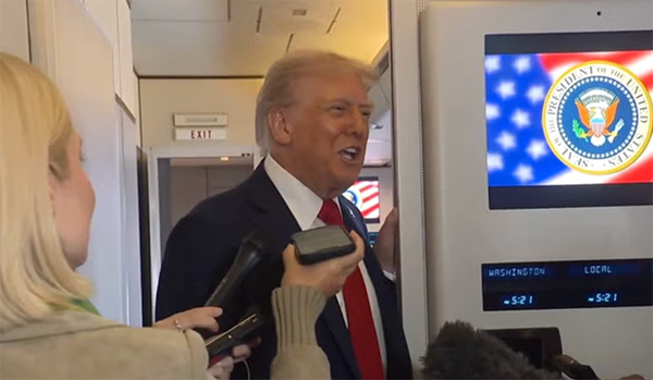 當地時間10月12日,特朗普在“空軍一號”上接受媒體採訪。 視頻截圖