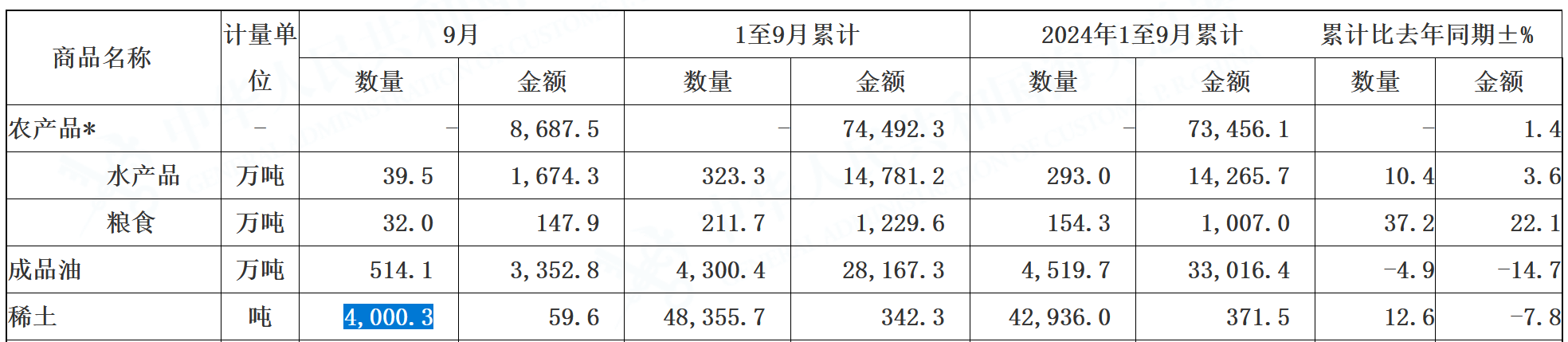 同時,今年9月,我國進口稀土6864.7噸,今年前9月累計進口7.88984萬噸、累計出口4.83557萬噸。