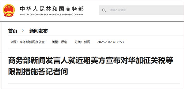 商務部網站10月14日消息,商務部新聞發言人就近期美方宣佈對華加徵關税等限制措施答記者問,全文如下。