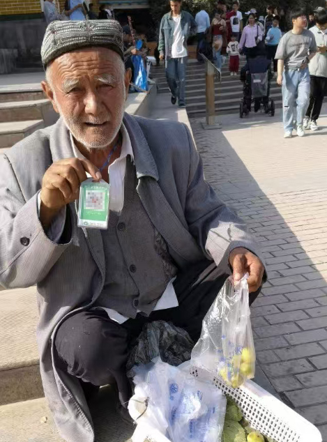 街頭的維吾爾族民眾,賣水果都可以用微信支付