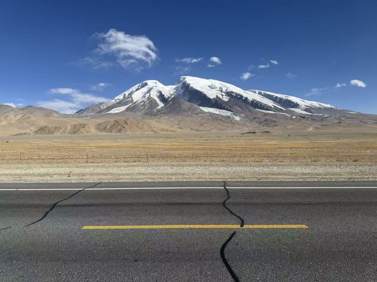 帕米爾高原上的慕士塔格峯俯瞰着喀喇崑崙公路