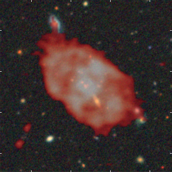 新發現的奇異射電環被稱為RAD J131346.9+500320,距離地球約75億光年,是迄今為止發現的最遙遠、能量最強的奇異射電環。不同於已知的多數奇異射電環,RAD J131346.9+500320呈現出兩個交叉的環狀結構,是天文學家發現的第二個具有雙環的奇異射電環。