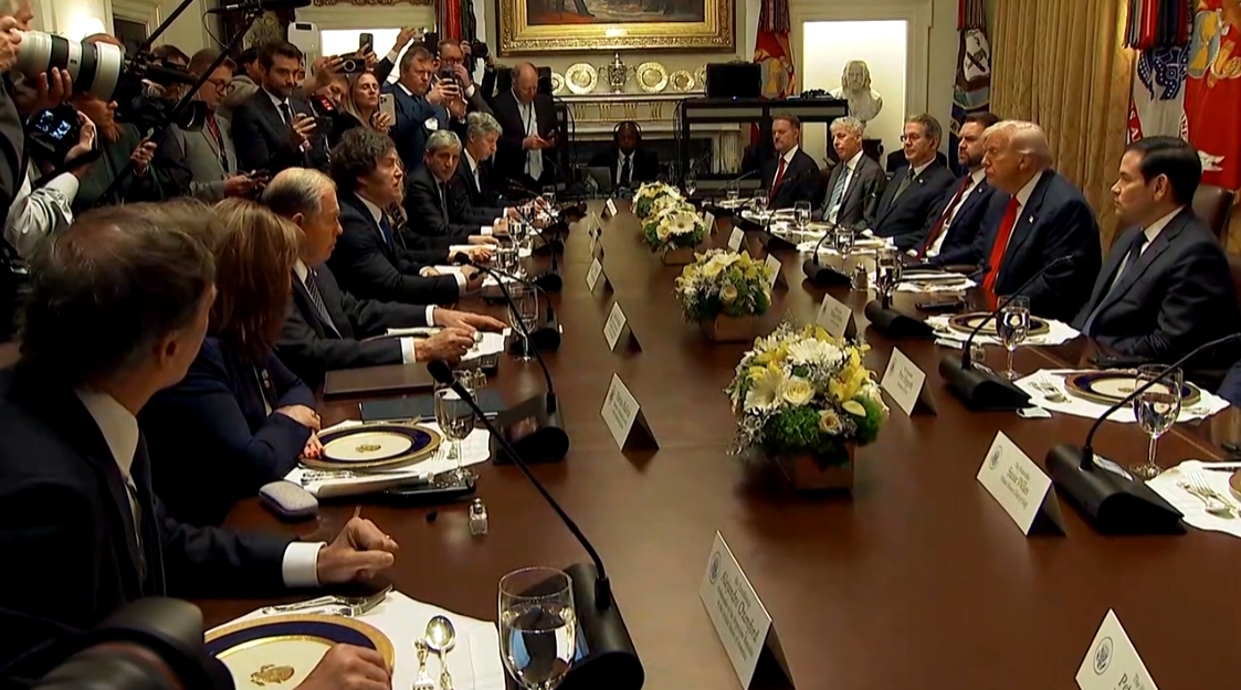 共進午餐前,在內閣會議室,兩人隔桌而坐。特朗普毫不掩飾地挑明,“選舉很快就要舉行了,這是一場非常重要的選舉。(米萊的)勝利至關重要。”