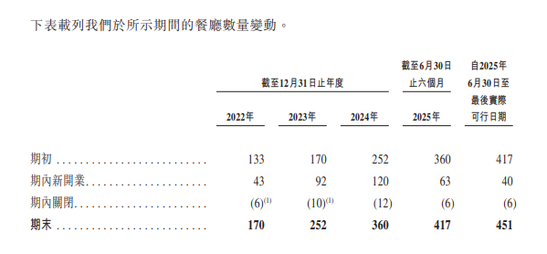 具體來看,遇見小面業績高增長的背後是其規模效應的高效釋放。自往績記錄期間期初至最後實際可行日期,遇見小面的餐廳數量已由133家增長至451家,包括中國內地22個城市的440家餐廳及香港特別行政區的11家餐廳。