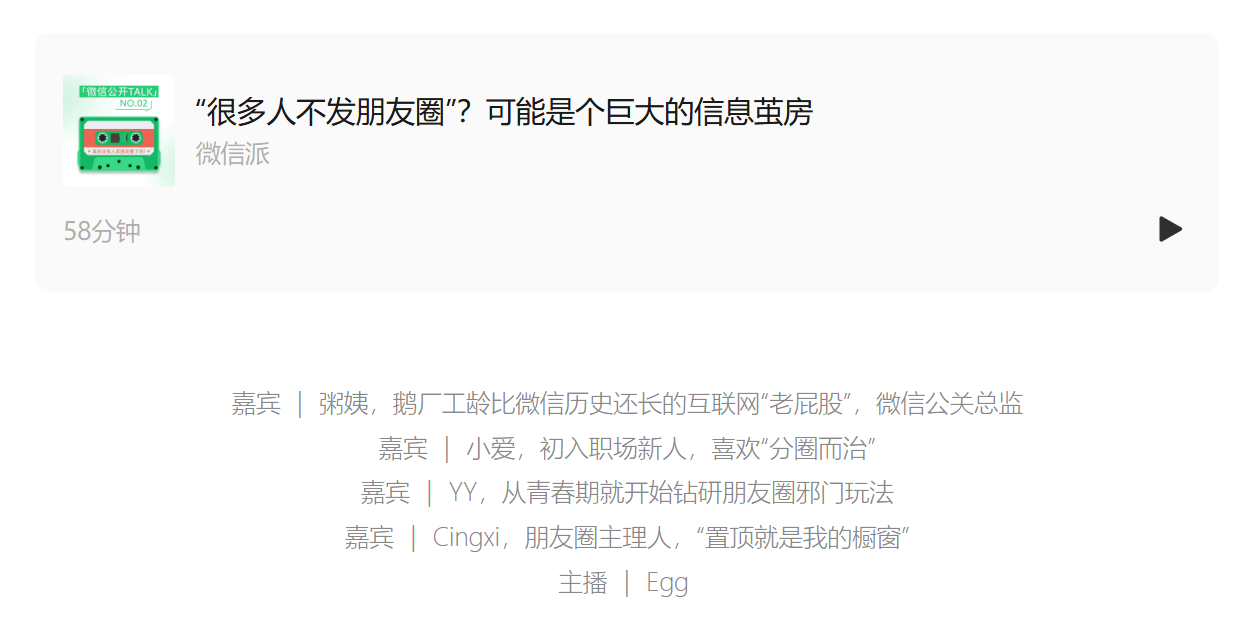 10月15日,據“微信派”微信公眾號消息,針對朋友圈為什麼沒有二次編輯和訪客功能,微信公關總監“粥姨姨”在播客中表示,微信朋友圈不會有訪客功能,“微信在涉及產品邏輯的時候不希望給大家增加更大的社交壓力”。