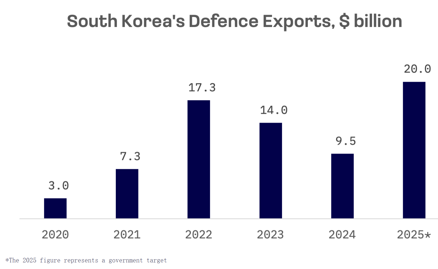 近五年,韓國國防出口數額