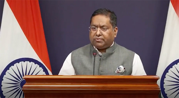 當地時間10月16日,印度外交部發言人蘭迪爾·賈伊斯瓦爾主持新聞發佈會。 視頻截圖