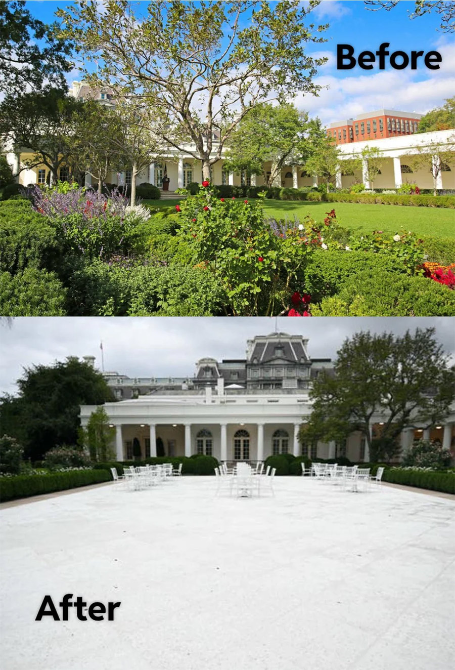 白宮玫瑰園特朗普裝修前後對比圖 社交媒體