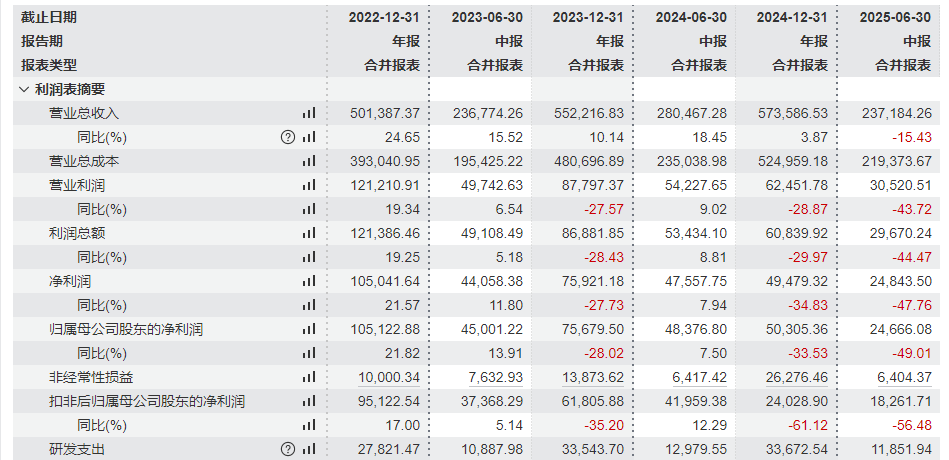 業內人士普遍認為貝泰妮的產業基金投資,是其應對主營業務增速放緩的積極舉措。數據顯示,2023年和2024年,公司淨利潤均呈現30%上下的下滑。截至6月30日,貝泰妮今年的營收和淨利潤雙雙錄得負增長。