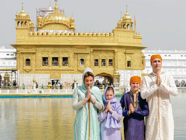 2018年特魯多訪印時,刻意訪問旁遮普邦阿姆利則金廟。