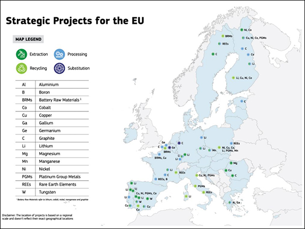 歐盟國家47個稀土和戰略礦產項目分佈圖 歐盟委員會