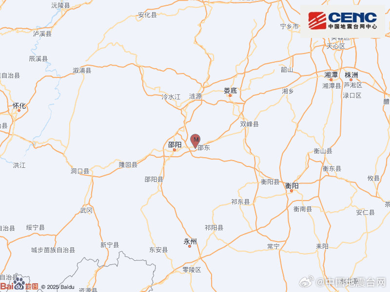 月內第三次,湖南邵陽市邵東市(塌陷)發生3.4級地震