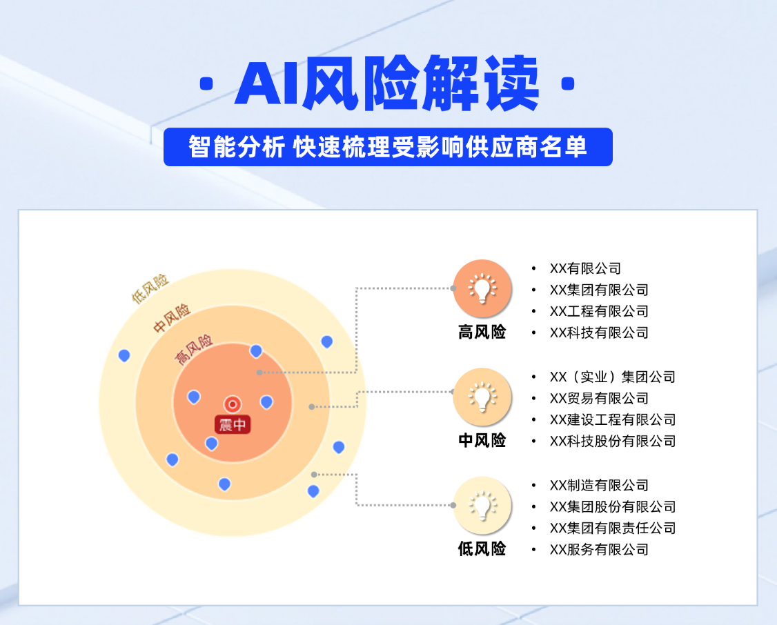 譬如在風險分析層面,AI技術通過構建多維度風險評估模型,可實現對供應鏈風險的動態關聯分析與深度挖掘。相較於傳統人工只能單一判斷某一事件影響,AI風控工具能基於大語言模型與商業數據的深度整合,自動識別風險事件間的傳導路徑。