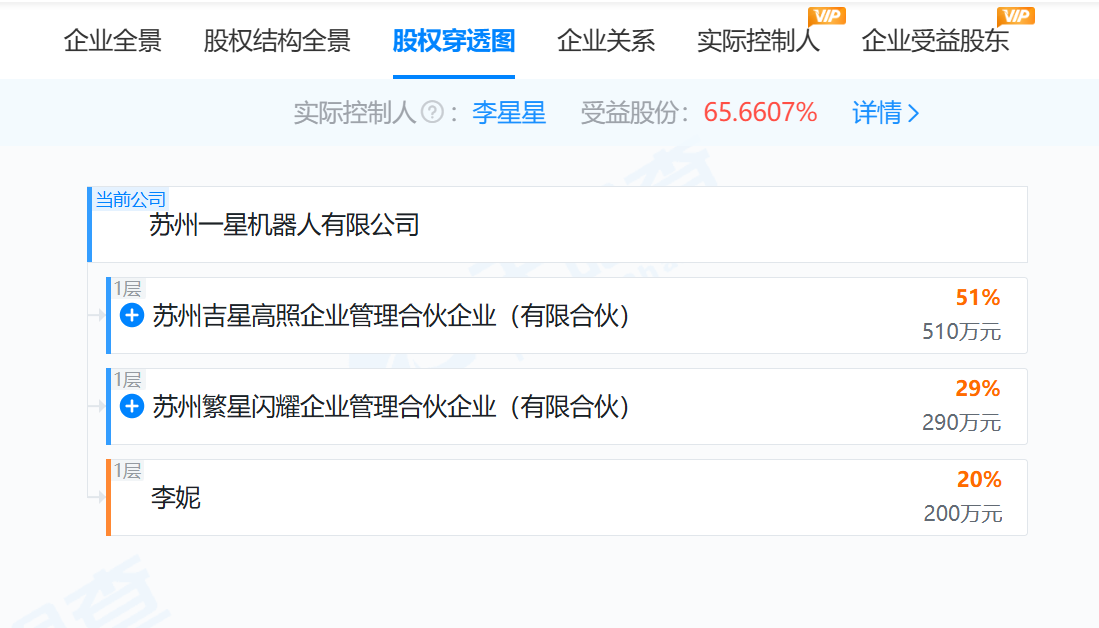 天眼查股權結構還顯示,該公司實控人為李星星,持股比例65.66%並擁有51%表決權。