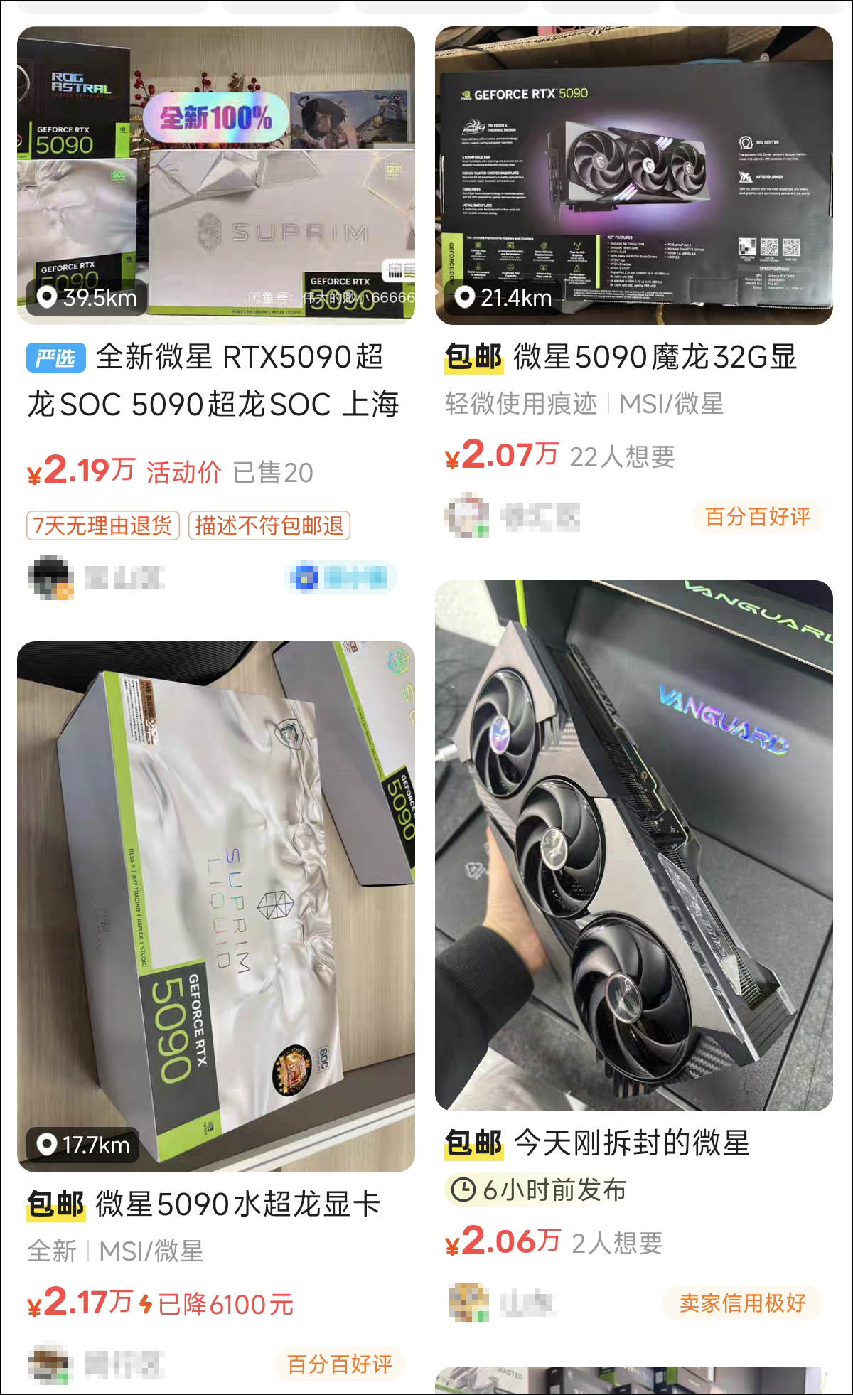 某二手平台顯示,5090系列顯卡溢價頗高