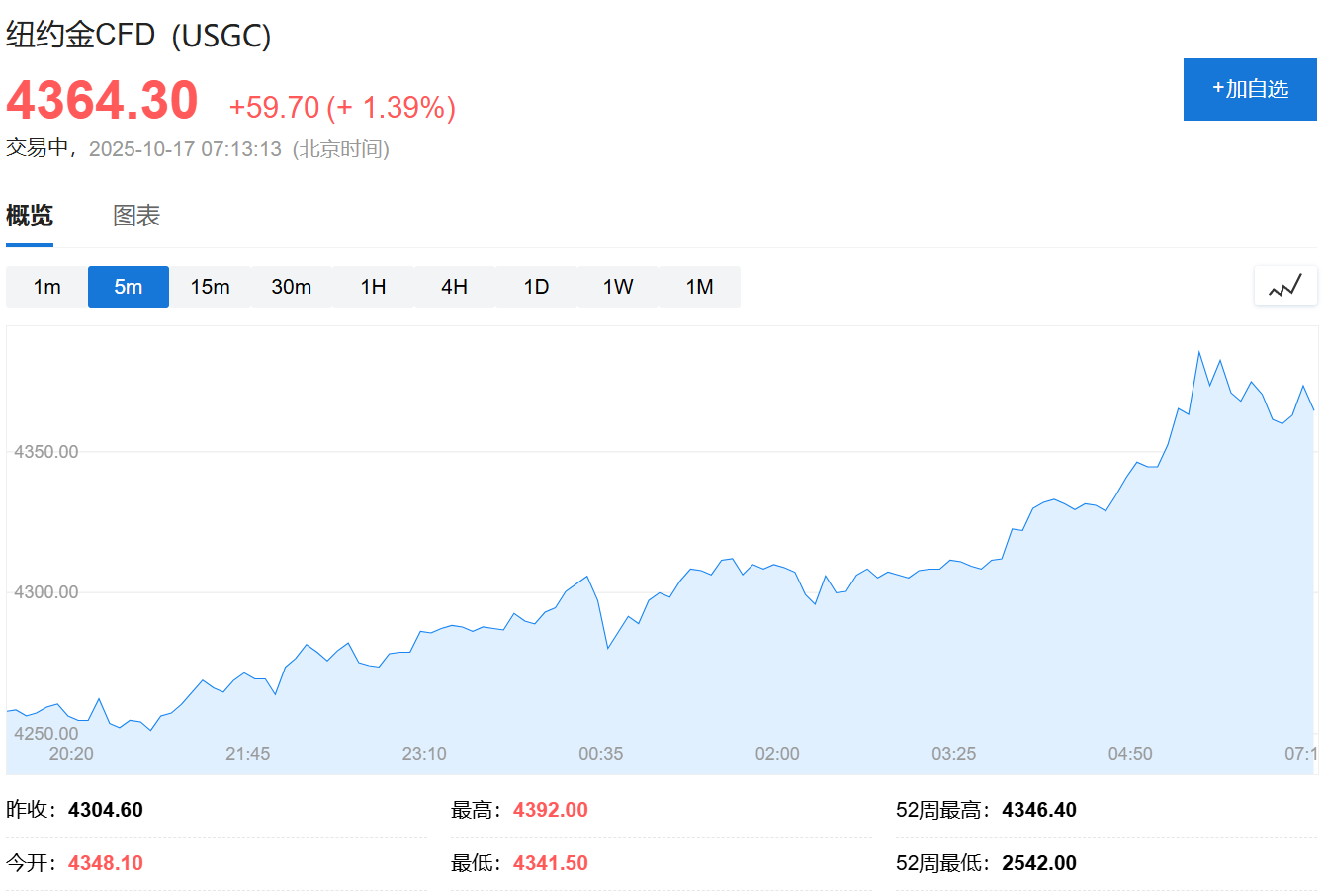截至發稿,COMEX黃金期貨繼續上漲,報4364.3美元/盎司。