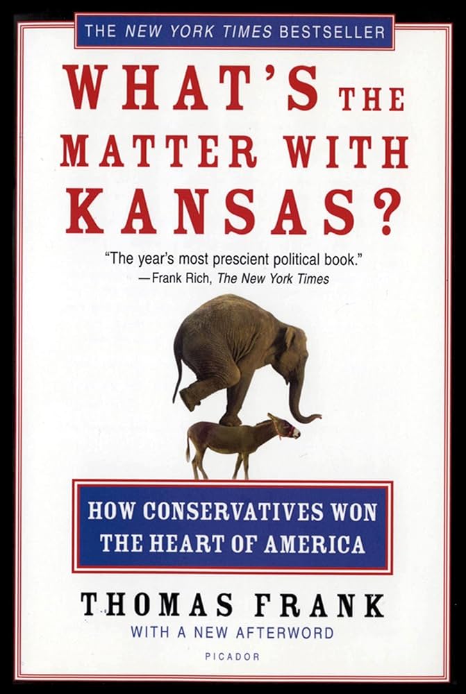 早在萬斯的《鄉下人的悲歌》爆紅之前十幾年,有一個叫托馬斯·弗蘭克的人寫了一本暢銷書《堪薩斯出了什麼問題》(What’s the matter with Kansas?),分析為什麼堪薩斯人的投票一直破壞有利於他們的社會經濟政策。