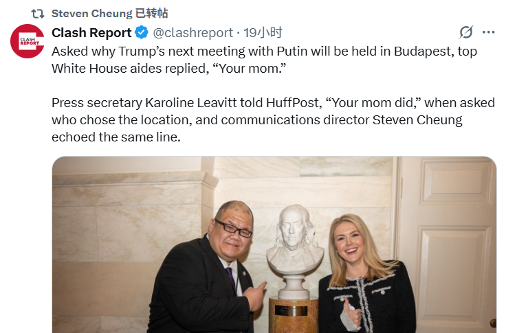 又一分鐘後,白宮通訊聯絡辦公室主任史蒂文·張又補充了一句更簡潔的回應,“你媽。”(Your mom.)