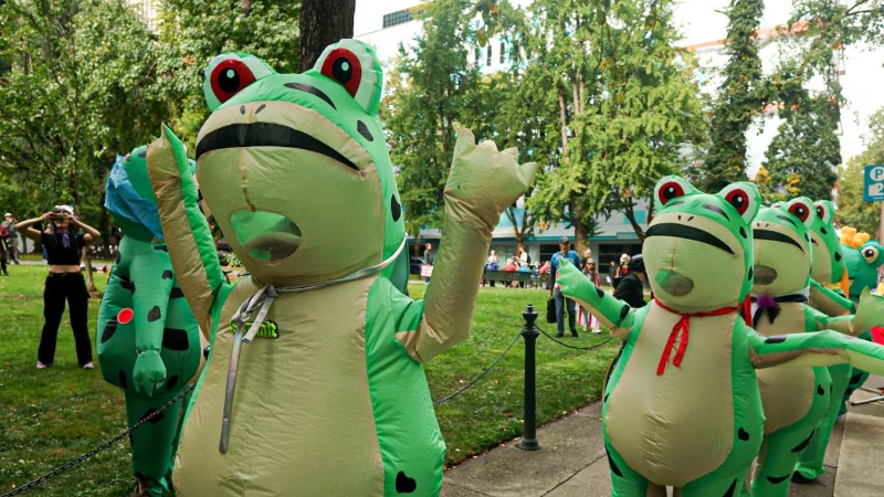 波特蘭居民喬伊·威爾遜(Joy Wilson)認為,青蛙已經成為非暴力抗議的象徵。