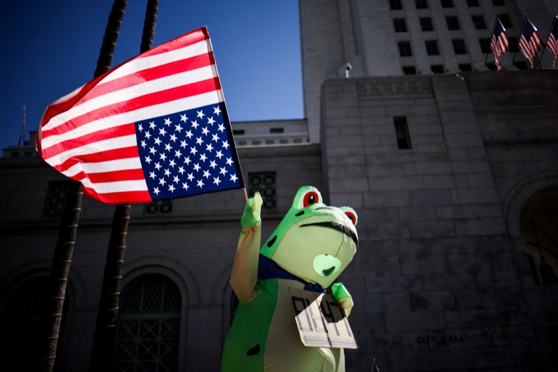 “充氣青蛙”湧上美國街頭,它為何成為近期美國抗議的標誌?