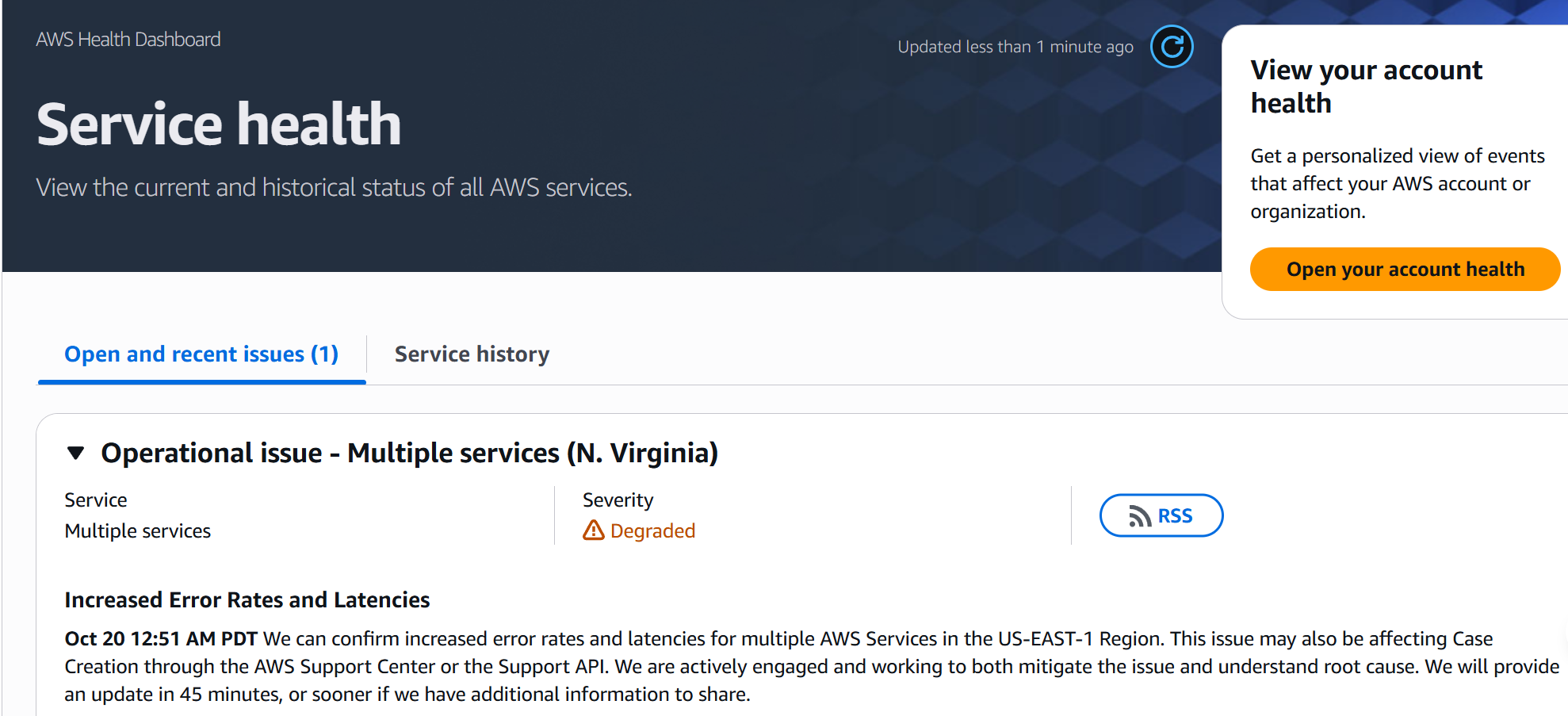 觀察者網瞭解到,亞馬遜AWS健康狀態頁面公佈的信息顯示,亞馬遜確認美國東部區域內的多個AWS服務出現錯誤率增加和延遲, Amazon DynamoDB數據庫服務中斷。