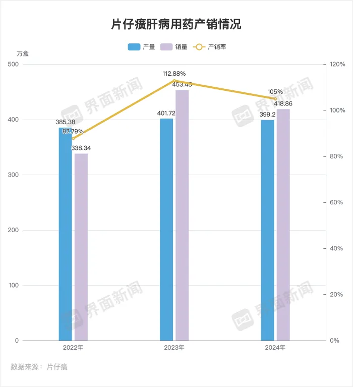 肝病用藥每年的產銷量都在400萬盒上下,最近三年產銷率分別為87.79%、112.88%和104.92%。肝病用藥仍然是公司當之無愧的中流砥柱,基本不存在產品滯銷的情況。但在需求端或已接近飽和。