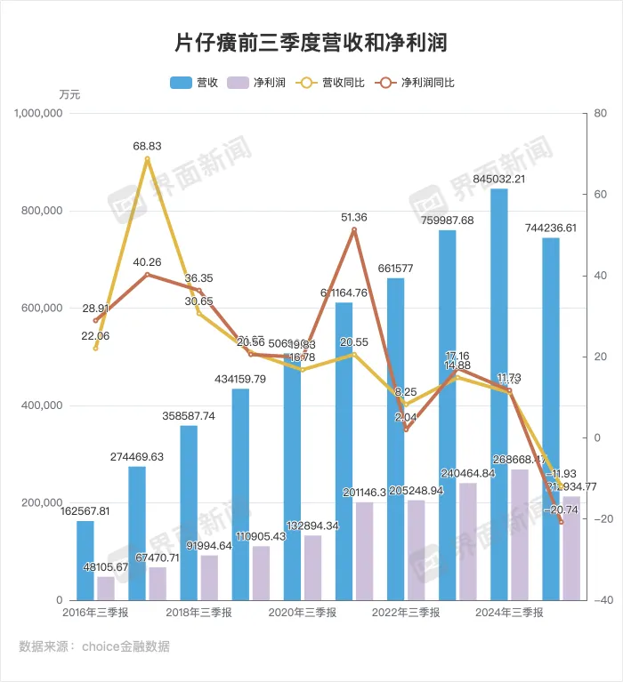 這也是近10年來,除新冠大流行影響外,片仔癀三季度的營收和淨利潤首次負增長。