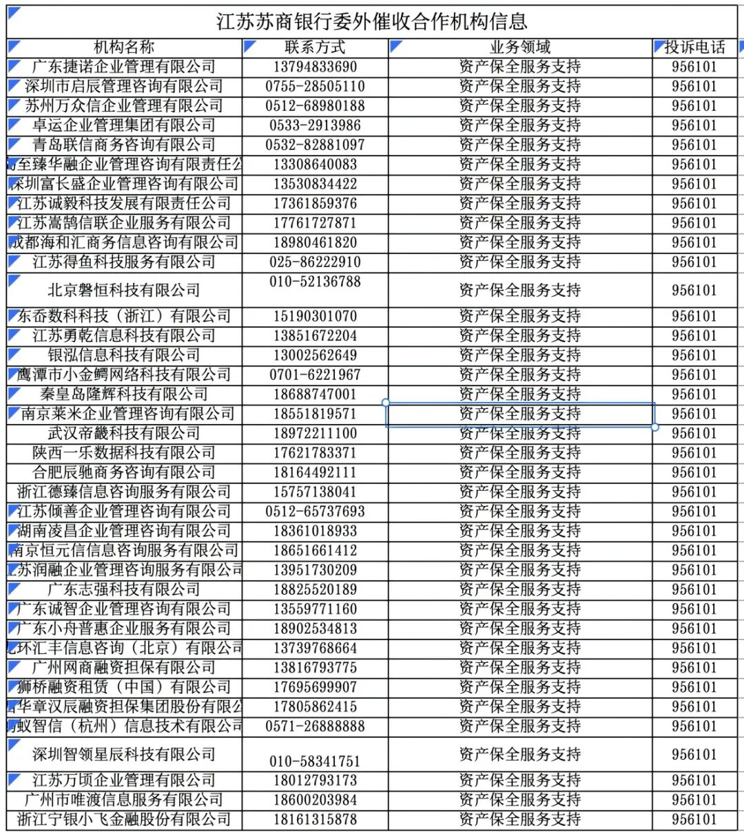 蘇商銀行催收外包名單公佈:此前三方催收人員冒充司法機關人員
