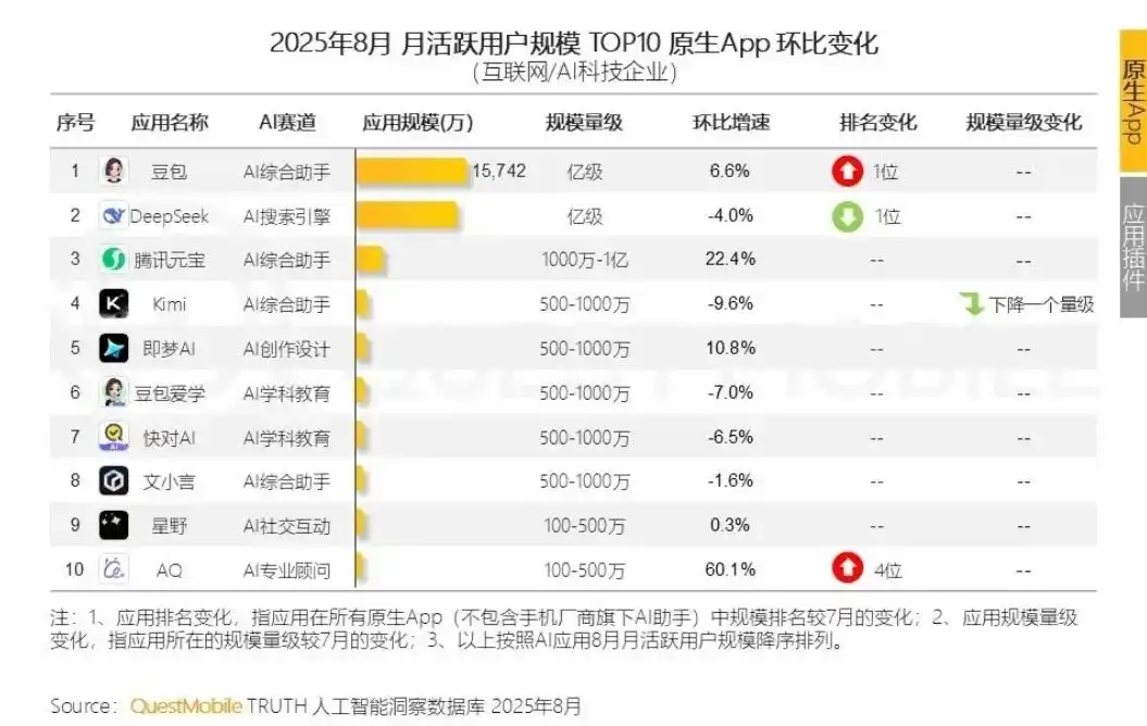 據公開資料顯示,“豆包”這款2023年推出的AI助手,憑藉差異化的產品策略和字節跳動的流量分發能力,已在競爭激烈的中國AI市場中超越DeepSeek,成為月活用户最多的AI應用。