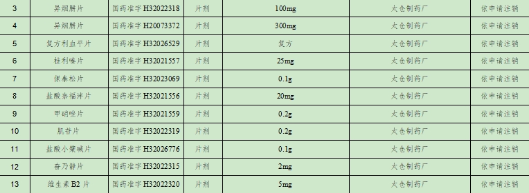 相較於跨國藥企的理性撤退,本土企業的註銷更像是一場被迫的自救。太倉製藥廠一次性註銷了11個品種,包括異煙肼片、複方利血平片、保泰松片、甲硝唑片、肌苷片等基礎藥物。這些都是醫保目錄內的常用藥,但也正因如此,成為了集採的“重點調整對象”。
