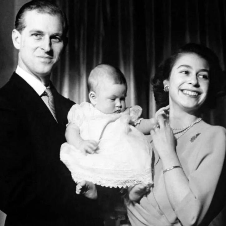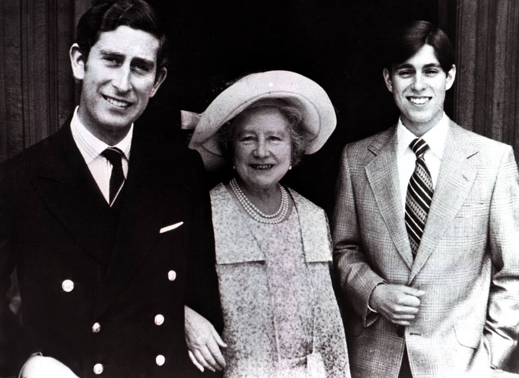 年輕時的查爾斯、已故伊麗莎白女王和安德魯王子(右)