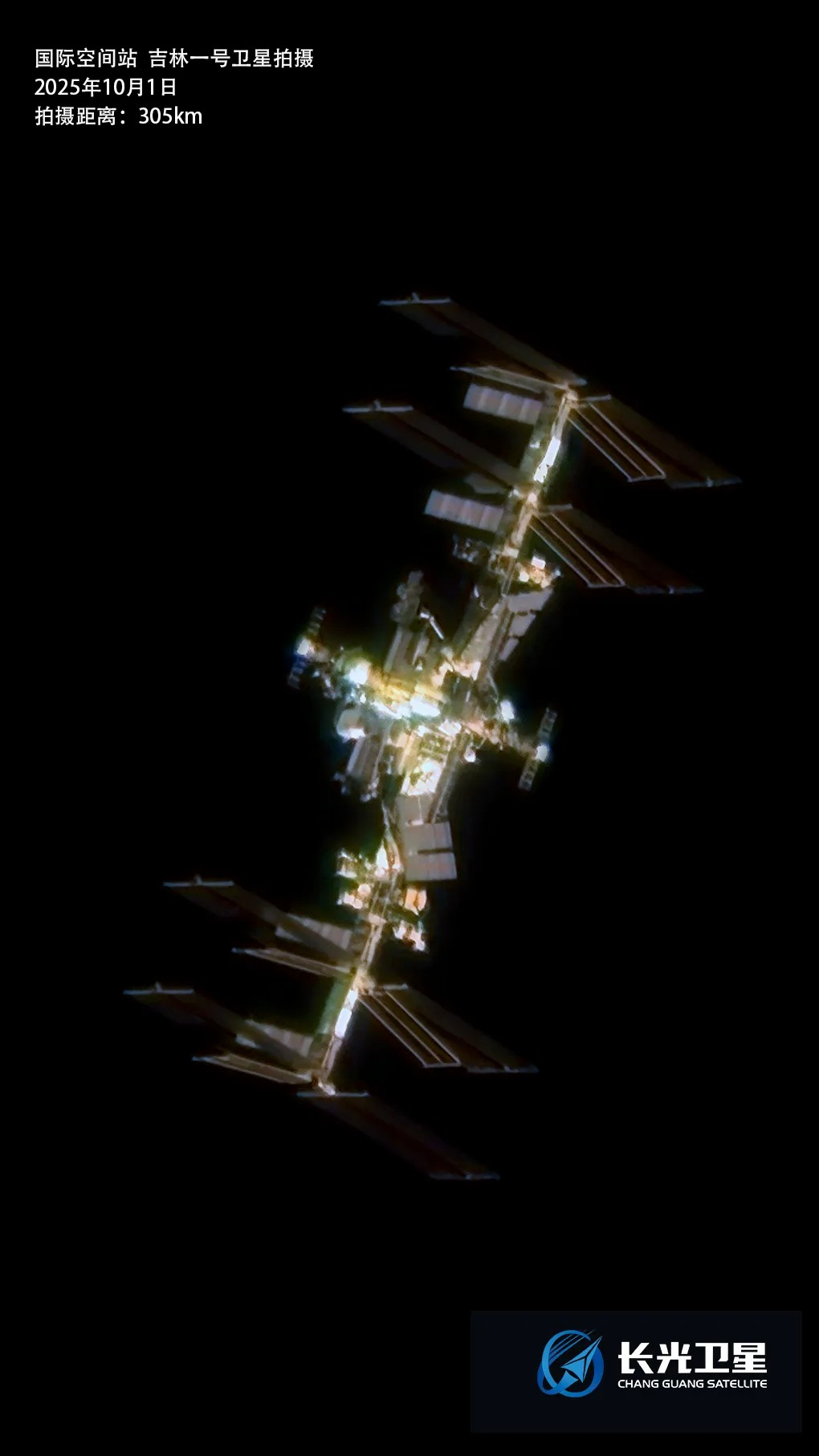 “吉林一號”成功“拍照取證”,拍攝國際空間站(上)和美國的“世景軍團”衞星(下)。 圖片來源:長光衞星