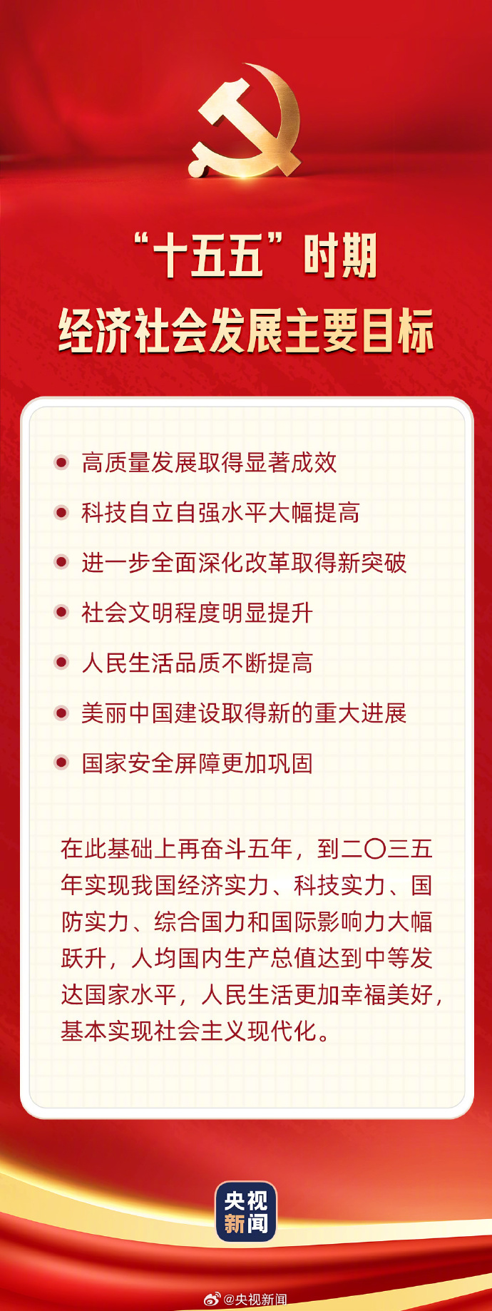 黨的二十屆四中全會審議通過“十五五”規劃建議。一圖速覽“十五五”經濟社會發展主要目標。