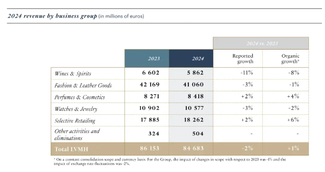 那時也是奢侈品巨頭與美妝業務的“蜜月期”。有媒體報道稱,美妝和香水單價相對成衣、皮具等核心奢侈品更低,是年輕人接觸奢侈品世界的“入門券”,能幫助品牌培育未來的核心客户。其高利潤率也成為了奢侈品巨頭提振業績的“利器”。以LVMH2024年財報為例,香水和化妝品業務以及絲芙蘭所在的精品零售成為集團唯一增長的兩個部門。
