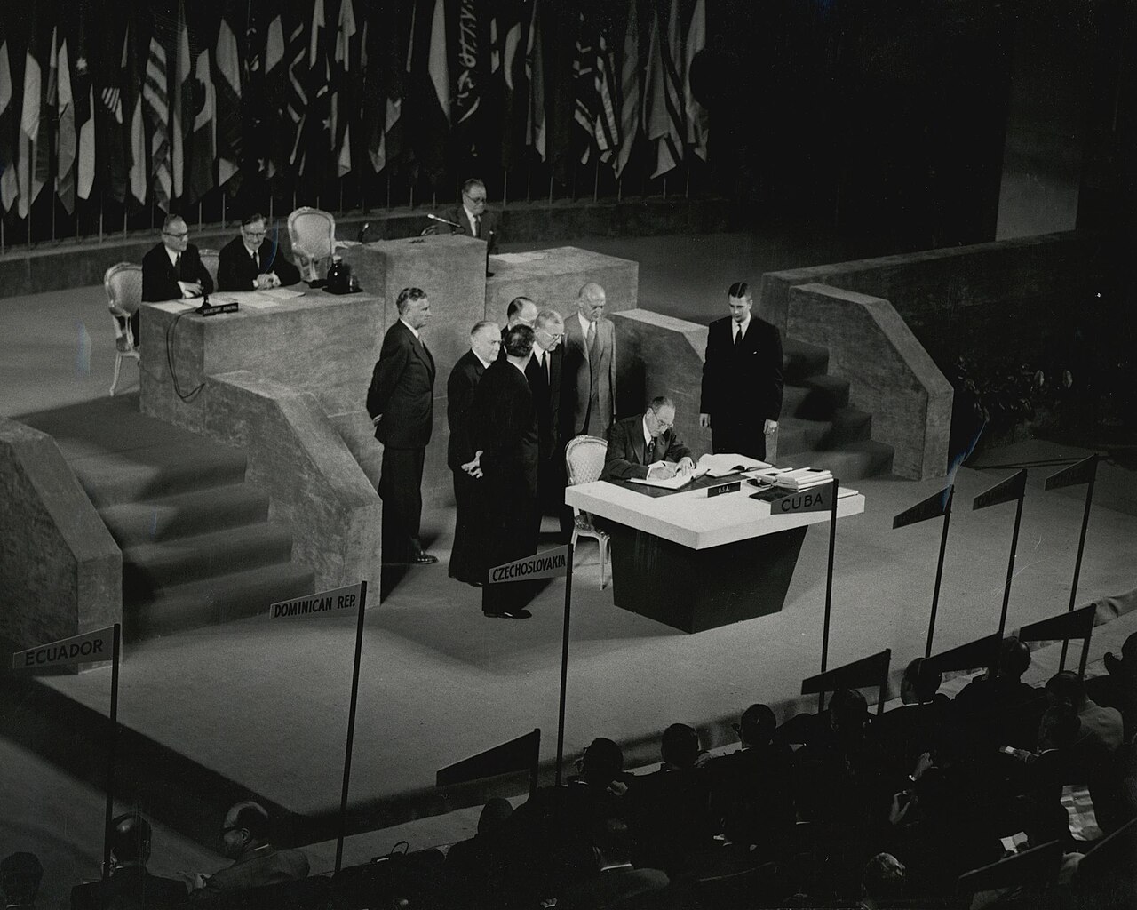 1951年9月8日,美國代表迪安·艾奇遜以國務卿身份簽署《舊金山和約》。