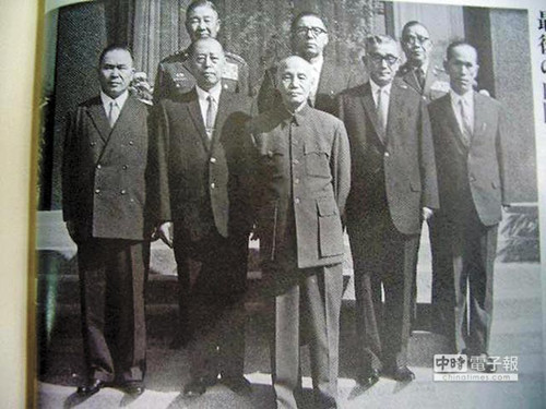 白團最後的主要幹部與蔣介石(中)合影。前排右二為化名白鴻亮的富田直亮。《中時電子報》