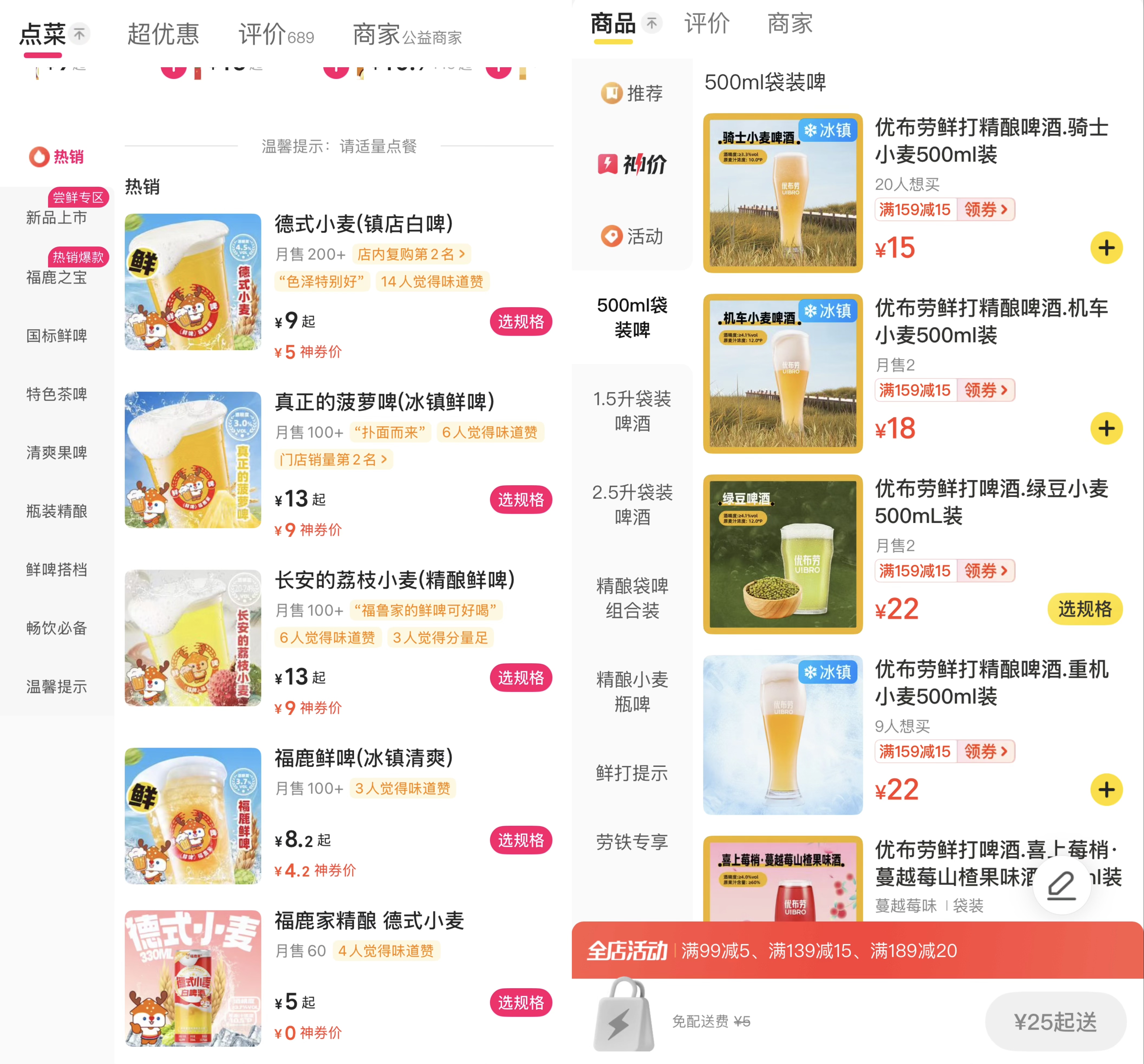 目前福鹿家已基本不提“精釀”概念,轉而強調“鮮啤”。其宣傳語更新為“酒廠直送,低温0-8℃鎖鮮”“不過濾不殺菌,才是國標真鮮啤”,並要求消費者在下單後半小時內飲用完畢,凸顯現制新鮮優勢。